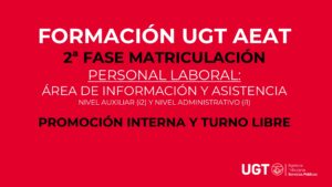 🔴 UGT INFORMA 🔴 ‼️ 2ª FASE MATRICULACIÓN – CURSO PERSONAL LABORAL PROMOCIÓN INTERNA Y TURNO LIBRE – Grupos i1 e i2 📢 Concluido hoy